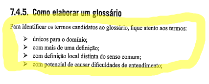 | 5 | Cada termo possui uma fonte de referência (documento, norma, especialista ou reunião) que justifique sua definição? [3] | Luan Vinícius, Samuel Felipe, Miquéias Ezequiel, Heyttor Augusto, João Pedro | Ver Imagem |