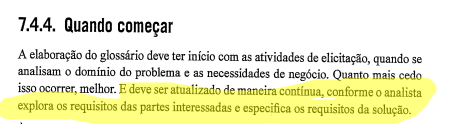| 10 | O analista de requisitos possui um processo documentado para identificar e registrar novos termos? [3] | Luan Vinícius, Samuel Felipe, Miquéias Ezequiel, Heyttor Augusto, João Pedro | Ver Imagem |