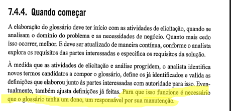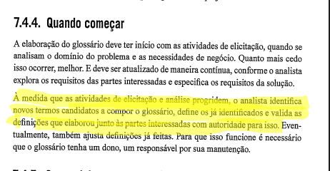 | 11 | Há critérios claros para decidir quando um termo deve ser adicionado ao glossário? [3] | Luan Vinícius, Samuel Felipe, Miquéias Ezequiel, Heyttor Augusto, João Pedro | Ver Imagem |