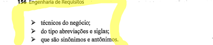 | 3 | Há registro de sinônimos, antônimos e abreviações para evitar interpretações múltiplas? [3] | Luan Vinícius, Samuel Felipe, Miquéias Ezequiel, Heyttor Augusto, João Pedro | Ver Imagem |