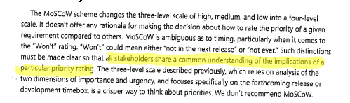 | 8 | Todos os stakeholders compartilham o mesmo entendimento sobre o significado de cada classificação (Must, Should, Could, Won’t)? [2] | Luan Vinícius, Samuel Felipe, Miquéias Ezequiel, Heyttor Augusto, João Pedro | Ver Imagem |