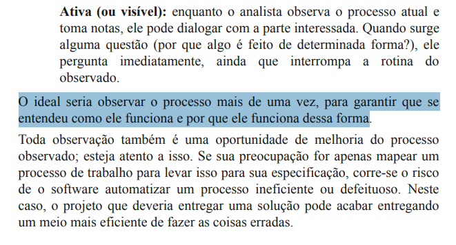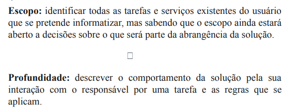 | 3 | A observação cobre tanto o escopo (tarefas e serviços existentes) quanto a profundidade (regras e interações)? [3] | Luan Vinícius | Ver Imagem |