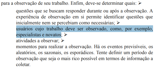 | 6 | A seleção de usuários observados contempla diferentes perfis de experiência (especialistas e novatos)? [3] | Luan Vinícius | Ver Imagem |