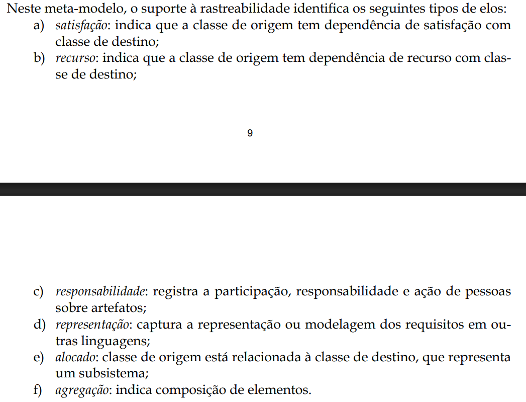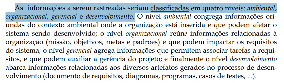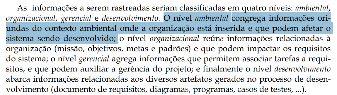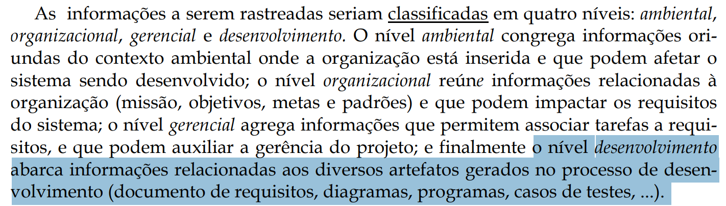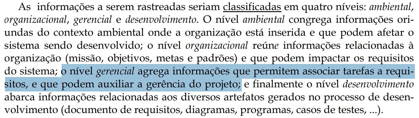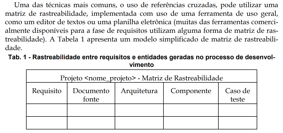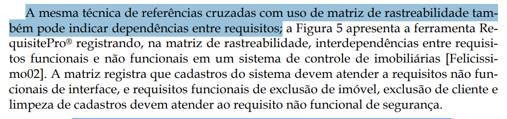 4. SAYÃO, Miriam; LEITE, Julio Cesar Sampaio do Prado. Rastreabilidade de Requisitos. Rio de Janeiro: Pontifícia Universidade Católica do Rio de Janeiro, 2005. (Monografias em Ciência da Computação, n. 20/05). Cap. 2 p. 13. Acesso em: 27 out. 2025.