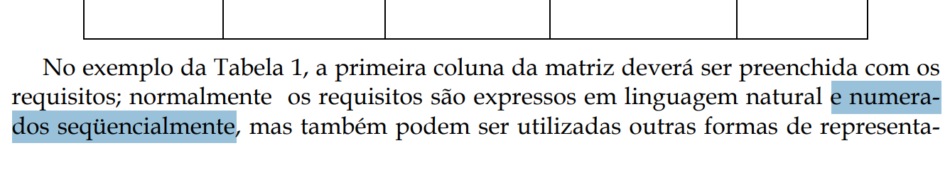3 Os requisitos listados na matriz são numerados sequencialmente para facilitar a identificação? [3] Luan Ver Imagem