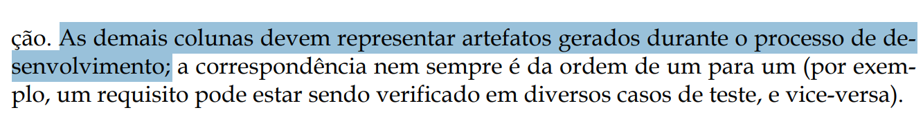 4 As demais colunas da matriz representam os artefatos gerados durante o processo de desenvolvimento (ex: Implementação, Pré-rastreabilidade, Artefatos criados)? [4] Luan Ver Imagem