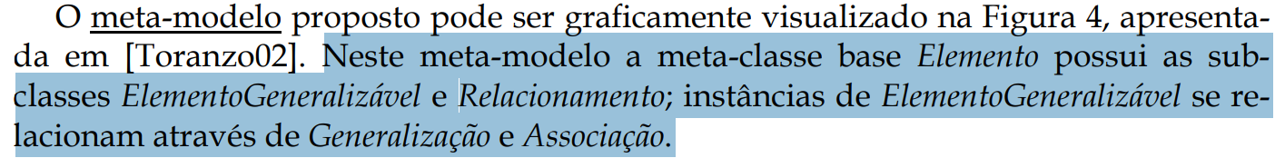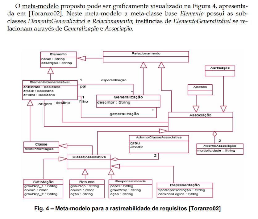 6 O meta-modelo de rastreabilidade foi utilizado, considerando as classes base “Elemento”, “ElementoGeneralizável” e “Relacionamento”? [1] Luan Vinícius, Samuel Felipe Ver Imagem