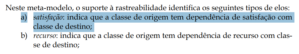 14 O meta-modelo de rastreabilidade foi representado graficamente (ex: UML), detalhando a notação (classes, setas, etc.)? [1] Samuel Felipe, Heyttor Augusto Ver Imagem