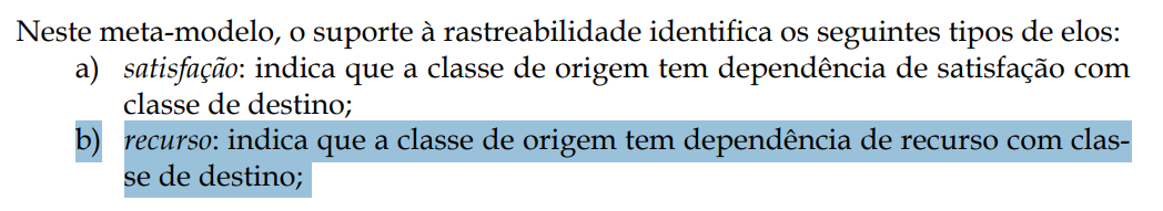 7 O modelo adota, identifica e distingue corretamente os seis tipos de elos de rastreabilidade propostos (Satisfação, Recurso, Responsabilidade, Representação, Alocado, Agregação)? [1] Luan Vinícius, Samuel Felipe Ver Imagem