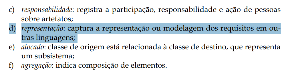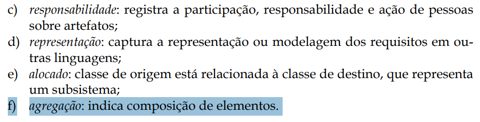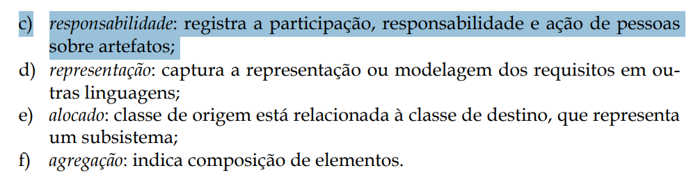 6 A matriz registra adequadamente os elos de "satisfação" (mostrando como um artefato satisfaz um requisito)? [5] Luan Ver Imagem