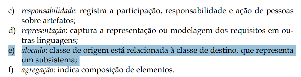 12 O elo Alocado (Alocação) foi utilizado para indicar que a classe de origem está relacionada a uma classe de destino que representa um subsistema (ex: histórias alocadas a sprints)? [2] Luan Vinícius, Samuel Felipe, Miquéias Ezequiel, João Pedro Ver Imagem